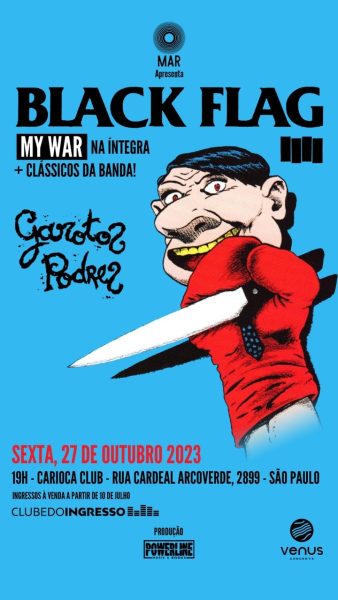 Já estão à venda os ingressos para o show do Black Flag que acontece dia 27 de outubro em São Paulo, no Carioca Club. A banda de punk rock norte-americana tocará o disco “My war” na íntegra e mais clássicos da carreira de quatro décadas.