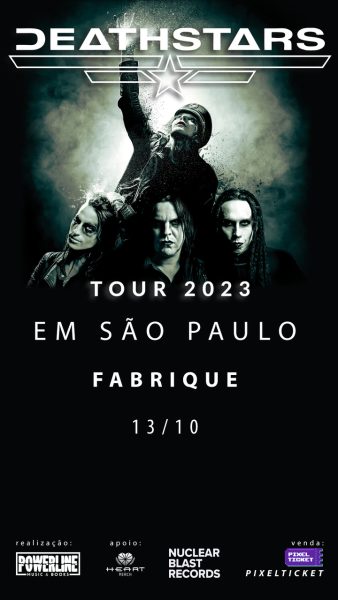 O retorno da banda sueca de metal industrial Deathstars acontecerá no dia 13 de outubro de 2023 em São Paulo, no Fabrique Club. O quarteto faz show único no país em meio à turnê do quinto álbum, “Everything destroys you”. A realização é da Powerline Music & Books e os ingressos já estão à venda. “Everything destroys you” foi mundialmente lançado no dia 5 de maio pela Nuclear Blast Records e ganhou versão nacional em parceria com a Shinigami Records. O disco, com 10 faixas, é o sucessor de “The perfect cult”, de 2014.