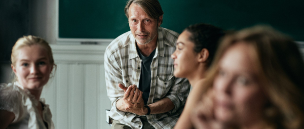 Ovacionada em San Sebastián, a produção saiu de lá com um prêmio coletivo para seus atores: Mikkelsen (que vive Martin), Thomas Bo Larsen, Magnus Millang e Lars Ranthe. Lá consagrou-se a antológica sequência em que Mikkelsen dança ao som da canção “What a Life”, gravada por Scarlet Pleasure, num brinde à vida. É uma música que gruda nos tímpanos. Que bom que o Telecine tá a mil no streaming, como segue estando no cabo.